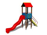 The slide is made from fibreglass. The surfaces of the slides, steps, etc. are made from high quality HDPE plastic (high density coloured polyethylene, which is characterised by high colour stability, UV resistance but mainly safety as it doesn't break and therefore there is no danger of injury to children by sharp fragments). The platform is made from HPL (High-pressure laminate, which is characterised by high colour stability and water resistance). The roof is made from HPL (High-pressure laminate, which is characterised by high colour stability, UV resistance and water resistance). All fastening material is galvanized or stainless steel.