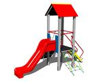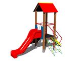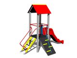 Tower, slide, A-shaped roof, sloping ramp with steps and metal handles, sloping ramp with the rope and HDPE steps, sloping net access. More information