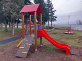 Tower, slide, A-shaped roof, sloping ramp with steps and metal handles, sloping ramp with the rope and HDPE steps, sloping net access. More information