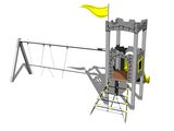 Seats and hinges are not part of the swing. It is necessary to buy a seat (2 pieces) of your choice and curtains (4 pieces). Tower, slide, 2x barrier from HDPE, sloping net access, vertical climbing wall on the tower with steps, flag, battlements from HDPE, metal beam. More information