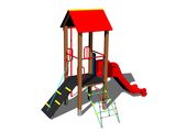 Tower, slide, A-shaped roof, fire pole, sloping ramp with the rope and HDPE steps, sloping net access. More information