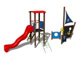 Tower, slide, arched roof, barrier, post with a flag, drawing board, sloping net access, anchor, helm made from HDPE, 2x barrier with an aperture, sloping ramp with steps and metal handles. More information