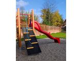 Tower, slide, sloping ramp with the rope and HDPE steps, sloping net access, vertical climbing wall. More information