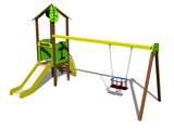 Tower, slide, roof in the shape of a leaf, sloping ramp with steps and HDPE handles, 2x barrier, BABY seat. More information