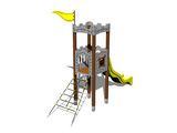 Tower, slide, 2x barrier from HDPE, sloping net access, vertical climbing wall on the tower with steps, flag, battlements from HDPE. More information