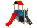 2x tower, slide, A-shaped roof, drawing board, sloping ramp with the rope and HDPE steps, 4x barrier from HDPE. More information