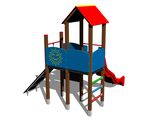 2x tower, slide, A-shaped roof, drawing board, sloping ramp with the rope and HDPE steps, 4x barrier from HDPE. More information