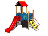 2x tower, slide, A-shaped roof, drawing board, sloping ramp with steps and metal handles, 4x barrier from HDPE, abacus. More information