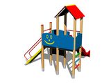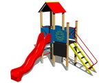 2x tower, slide, A-shaped roof, drawing board, sloping ramp with steps and metal handles, 4x barrier from HDPE, abacus. More information
