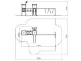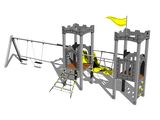 Seats and hinges are not part of the swing. It is necessary to buy a seat (2 pieces) of your choice and curtains (4 pieces). 2x tower, slide, 3x barrier from HDPE, sloping net access, vertical climbing wall on the tower with steps, flag, 2x battlements from HDPE, metal beam, rope bridge with steps. More information
