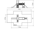 2x tower, A-shaped roof, slide, sloping ramp with the rope and HDPE steps, ladder, sloping ramp with steps and metal handles, bridge with a rope railing, drawing board, barrier. More information