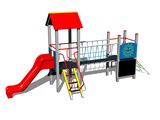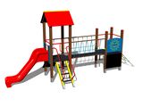 2x tower, A-shaped roof, slide, sloping ramp with the rope and HDPE steps, ladder, sloping ramp with steps and metal handles, bridge with a rope railing, drawing board, barrier. More information