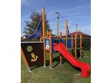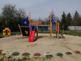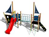 2x tower, slide, metal railing set in a wooden frame, 2x post with a flag, drawing board, sloping net access, sloping ramp with the rope and HDPE steps, anchor, helm made from HDPE, rope bridge, 2x barrier from HDPE. More information