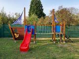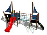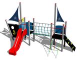 2x tower, slide, metal railing set in a metal frame, 2x post with a flag, drawing board, sloping net access, sloping ramp with the rope and HDPE steps, anchor, helm made from HDPE, rope bridge, 2x barrier from HDPE. More information