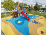 The slide is made from fibreglass. The surfaces of the slides, steps, etc. are made from high quality HDPE plastic (high density coloured polyethylene, which is characterised by high colour stability, UV resistance but mainly safety as it doesn't break and therefore there is no danger of injury to children by sharp fragments). The climbing net, rope bridge and the ropes are made using HERKULES material (16 mm thick ropes made from polypropylene with a steel internal core) and are connected with plastic or aluminium joints. The platforms, ramp and the drawing board are made from HPL (High-pressure laminate, which is characterised by high colour stability and water resistance). All fastening material is galvanized or stainless steel.