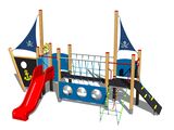 2x tower, slide, metal railing set in a wooden frame, 2x post with a flag, drawing board, sloping net access, sloping ramp with the rope and HDPE steps, anchor, helm made from HDPE, bridge with a rope railing, barrier from HDPE, barrier with an apertures, 2x barrier from HDPE. More information