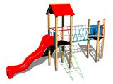 2x tower, slide, A-shaped roof, barrier from HDPE, sloping ramp with the rope and HDPE steps, rope bridge, sloping net access, ladder. More information