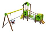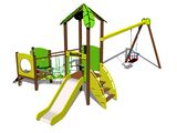 2x Tower, slide, roof in the shape of a leaf, sloping ramp with steps and HDPE handles, sloping ramp with HDPE steps, 2x barrier, rope bridge, barrier with an aperture, BABY seat. More information