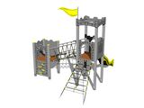 2x tower, slide, 3x barrier from HDPE, sloping net access, fire pole, rope bridge, vertical climbing wall on the tower with steps, flag, battlements from HDPE. More information