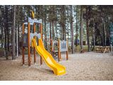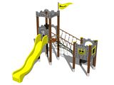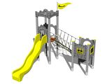 2x tower, slide, 3x barrier from HDPE, sloping net access, fire pole, rope bridge, vertical climbing wall on the tower with steps, flag, battlements from HDPE. More information