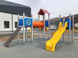 3x tower, slide, A-shaped roof, sloping climbing wall, rope bridge, ladder, 5x barrier from HDPE, crawl tunnel between the towers. More information