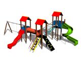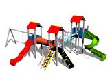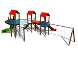 Seats and hinges are not part of the swing. It is necessary to buy a seat (2 pieces) of your choice and curtains (4 pieces). 3x tower, slide, tube slide, 3x A-shaped roof, 6x barrier from HDPE, sloping ramp with the rope and HDPE steps, sloping ramp with steps and metal handles, crawl tunnel between the towers, rope bridge, metal beam, vertical climbing net. More information
