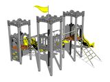 3x tower, 2x slide, 4x barrier from HDPE, sloping net access, rope bridge, vertical climbing wall on the tower with steps, flag, 3x battlements from HDPE, rope bridge with steps. More information