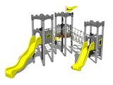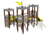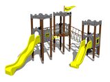 3x tower, 2x slide, 4x barrier from HDPE, sloping net access, rope bridge, vertical climbing wall on the tower with steps, flag, 3x battlements from HDPE, rope bridge with steps. More information