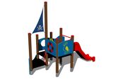 3x tower, slide, 2x barrier made form HDPE with circle, barrier made form HDPE with parrot, barrier made form HDPE with aperture, bow with anchor and wave, rudder, post with a flag. More information