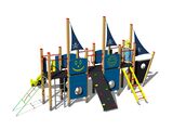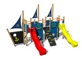 5x tower, 2x slide, metal railing set in a wooden frame, 3x post with a flag, drawing board, sloping net access, sloping climbing wall with climbing holds, sloping ramp with the rope and HDPE steps, sloping ladder with metal steps, 4x barrier with an aperture, ladder, anchor, helm made from HDPE, 4x barrier from HDPE. More information