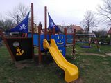 The slides are made from fibreglass. The surfaces of the slides, steps, etc. are made from high quality HDPE plastic (high density coloured polyethylene, which is characterised by high colour stability, UV resistance but mainly safety as it doesn't break and therefore there is no danger of injury to children by sharp fragments). The ropes and nets are made using HERKULES material (16 mm thick ropes made from polypropylene with a steel internal core) and are connected with plastic or aluminium joints. The platforms and the drawing board are made from HPL (High-pressure laminate, which is characterised by high colour stability and water resistance).The swing is hung on a metal beam using galvanized chains. The "Bird's Nest" seat is made from polypropylene rope with heavy duty fibres. The hanging ropes are made using HERKULES material (16 mm thick ropes made from polypropylene with a steel internal core). All fastening material is galvanized or stainless steel.