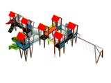Seats and hinges are not part of the swing. It is necessary to buy a seat (2 pieces) of your choice and curtains (4 pieces). 7x tower, 2x slide, tube slide, 7x A-shaped roof, 9x barrier, sloping climbing wall with climbing holds, sloping ramp with the rope and HDPE steps, 2x sloping ramp with steps and metal handles, crawl tunnel, fire pole, spider web, 3x rope bridge, metal beam, 2x bridge with a rope railing, ladder. More information