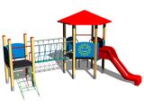 2x tower, roof, slide, sloping net access, ladder, rope bridge, 5x barrier from HDPE. More information
