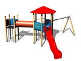 Seats and hinges are not part of the swing. It is necessary to buy a seat (1 pieces) of your choice and curtains (2 pieces). 2x tower, roof, slide, 3x metal railing set in a wooden frame, crawl tunnel between the towers, 2x ladder, chain swing, 2x barrier from HDPE. More information