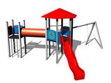 The slide is made from fibreglass. The surfaces of the slide, steps, etc. are made from high quality HDPE plastic (high density coloured polyethylene, which is characterised by high colour stability, UV resistance but mainly safety as it doesn't break and therefore there is no danger of injury to children by sharp fragments). The platforms are made from HPL (High-pressure laminate, which is characterised by high colour stability and water resistance). Crawl tunnel is made from fibreglass which is UV stable and it is characterised by high colour stability. All fastening material is galvanized or stainless steel.