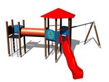 Seats and hinges are not part of the swing. It is necessary to buy a seat (1 pieces) of your choice and curtains (2 pieces). 2x tower, roof, slide, 3x metal railing set in a wooden frame, crawl tunnel between the towers, 2x ladder, chain swing, 2x barrier from HDPE. More information