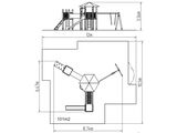 Seats and hinges are not part of the swing. It is necessary to buy a seat (1 pieces) of your choice and curtains (2 pieces). 3x tower, slide, roof, sloping climbing wall, rope bridge, ladder, crawl tunnel between the towers, fire pole, metal beam, 6x barrier from HDPE. More information