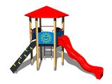 Tower, roof, slide, sloping ramp with the rope and HDPE steps, 3x barrier from HDPE, ladder. More information