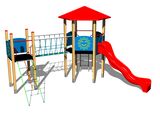 2x tower, roof, slide, sloping net access, ladder, rope bridge, 5x barrier from HDPE. More information