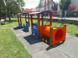 The support structure of the train is made of structural steel which is protected against corrosion by zinc coating, resulting in a very prolonged service life of the workout elements, or duplex powder coated with coat curing according to RAL to prevent corrosion. These structures are anchored to concrete footings. All other metallic elements are also zinc coated or duplex powder coated with coat curing according to RAL to prevent corrosion.