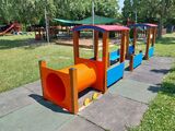 All other parts of the play unit are made from high quality HDPE plastic (high density coloured polyethylene, which is characterised by high colour stability, UV resistance but mainly safety as it doesn't break and therefore there is no danger of injury to children by sharp fragments). Crawl tunnels are made from fibreglass which is UV stable and it is characterised by high colour stability. All fastening material is galvanized or stainless steel.